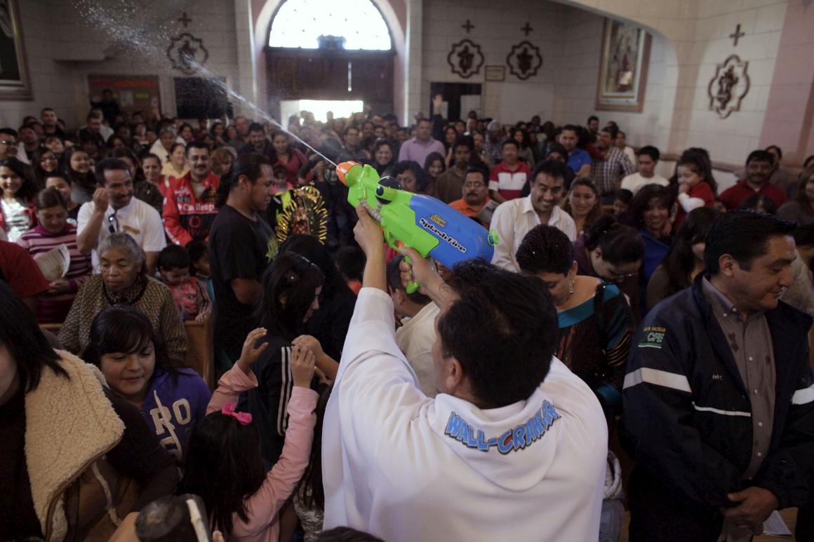 Ilustração> No México, padre pop reza missa usando batina com desenhos de super heróis http://is.gd/6Hje8B Um padre muito especial, que usa pistola de água para benzer os fiéis http://is.gd/7Os914